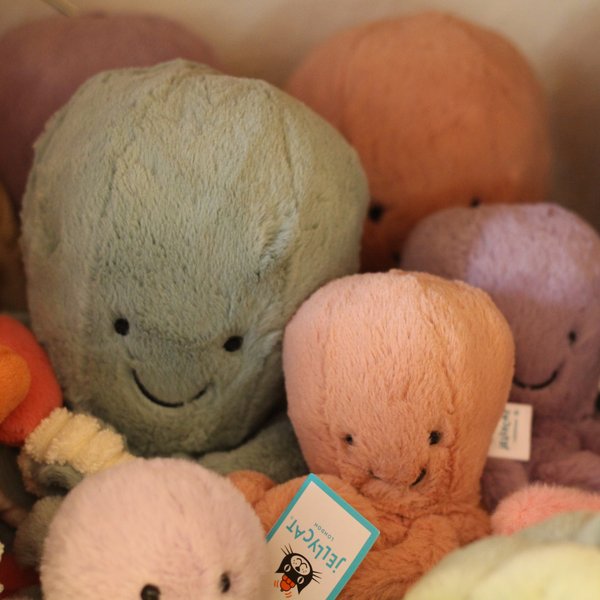 Holzspielzeuge, die zum kreativen Spiel anregen, Kuscheltiere, die nicht nur Kinder zum Strahlen und Schmunzeln bringen oder auch ein Beißring, der die Kleinen beim ersten Zahn unterstützt. Marken, die wir lieben:Djeco, Grimms, Jellycat, Oli&Carol, Sebra